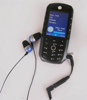 Motorola E1000 с подключенными наушниками через переходник |