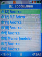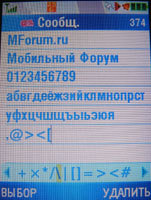 Сообщения включают в себя SMS, EMS, MMS, E-Mail's, включая видеосообщения. Работа с текстовыми посланиями не доставляет неудобств - приятный шрифт, 8 строчек, шаблоны, а также возможность копировать/вырезать и вставлять текст из любого меню в ваше сообщение. Электронная почта понимает русскую кодировку и имеет понятные настройки. Абоненты 3G сетей могут отослать MMS-картинки в свой собственный виртуальный альбом, а также дистанционно распечатать фотографии.