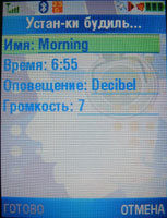 Будильник - предусмотрены пять будильников, в которых назначается лишь название, время, мелодия и громкость. К слову, телефон не перевел автоматически время на летний часовой пояс.