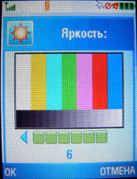 Яркость выставляется шестью уровнями, причем предельное значение можно охарактеризовать как сверхъяркое. Для будней подойдет третье деление. Не стоит забывать и то, что максимально мощная подсветка способна достаточно быстро "съесть" заряд аккумулятора, поэтому рекомендуется переключать аппарат режим энергосбережения "Battery save" и убавлять яркость.