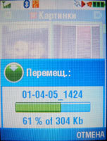 Видеосъемка может осуществляется любой камерой. В процессе допустимо пользоваться вспышкой и двукратным зумом. Качество видео можно оценить как среднее: получаемые ролики в разрешении 176х144 лучше просматривать на экране телефона, причем в полноэкранном режиме, так как на экране компьютера ролики смотрятся плохо. Продолжительность ролика – 10 секунд (MMS Short), 20 секунд (MMS Long) и 30 - Maximum, что странно. Во всю свободную память записать ролик не удастся, впрочем, при таком затрапезном качестве вряд ли возникнет подобное желание.