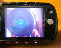 Камера, расположенная на тыльной стороне, соответствует требованию времени - 1.2 мегапикселя с максимальным разрешением в 1280х960 точек. Присутствует вспышка, предназначенная для съемки в темноте и активируемая "звездочкой". Из приятных мелочей: 2-х, 4-х и 8-кратный ZOOM. Какие либо спецэффекты отсутствуют, имеются лишь фото по таймеру, яркость, экспозиция и режим зеркала. В режиме видоискателя отклонения джойстика влево/вправо позволяют быстро переключаться между двумя камерами. К минусам можно отнести невозможность передачи картинки через Bluetooth несколькими нажатиями, придется "идти" в галерею. В свойствах снимка на компьютере можно просмотреть дату и время снимка.