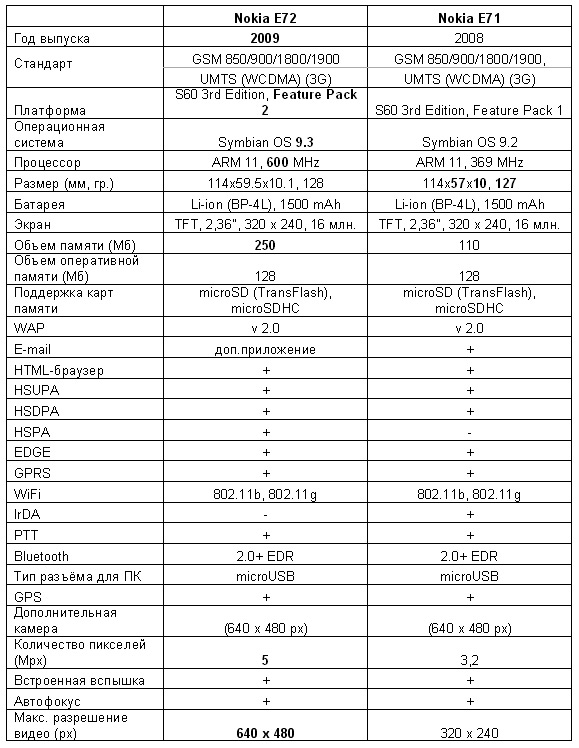 | Nokia E72 | Nokia E71 | |||