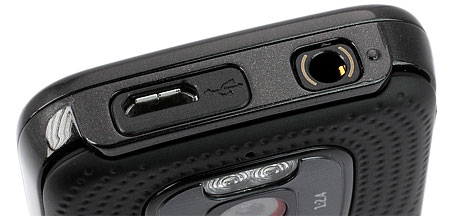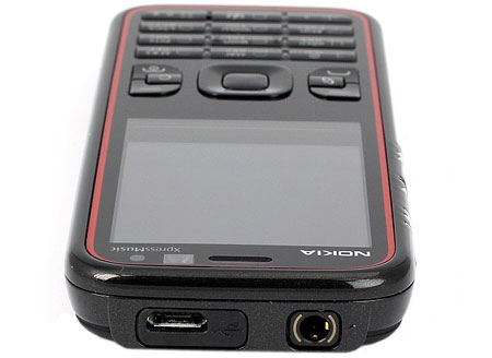 На верхнем торце Nokia 5630 XpressMusic находится 3,5-миллиметровый аудиоразъем и порт microUSB, а также небольшой светодиодный индикатор, который загорается при подключении телефона к компьютеру или зарядному устройству.