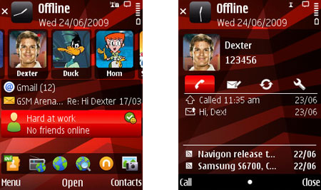 Самая серьезная (и лучшая) перемена заключается в появлении режима Contact Bar. В верхней части экрана располагается полоса, в которую можно внести до 20 избранных контактов, каждый из которых будет отображаться в виде имени и фотографии. Экран может показывать одновременно только три контакта, но по списку можно «ходить» вправо и влево. При выборе одного из контактов на экран выводится информация обо всем вашем с ним общении - звонках, сообщениях, RSS, а также меню настроек.
