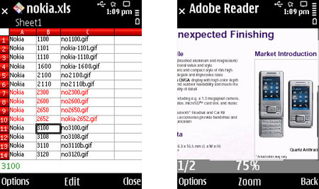 временные интервалы. Поразительно, но Nokia 5630 XpressMusic с его небольшим экраном может открывать даже некоторые вложенные файлы Microsoft Office, причем с довольно высокой скоростью.