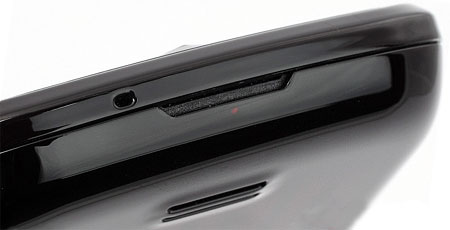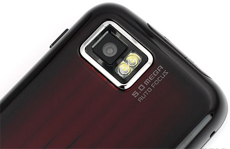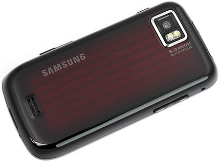 На задней панели Samsung S8000 Jet - 5-мегапиксельная камера с двойной светодиодной вспышкой. Глазок камеры ничем не защищен, поэтому появление на нем царапин вполне возможно. Внизу находится небольшой динамик.