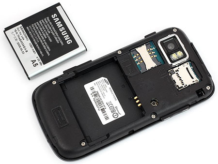 Под задней крышкой обнаружились аккумулятор емкостью 1080 мАч и слоты для SIM-карты и для карты памяти MicroSD. Несмотря на то, что гнездо для флэшек находится в батарейном отсеке, поддерживается «горячая» замена.