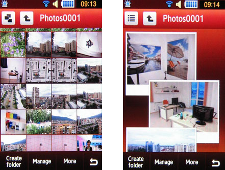 Альтернативная фотогалерея Samsung S8000 Jet использует помимо перечисленных фильтров еще интригующую сортировку по цветовой гамме. По умолчанию же все изображения расположены в хронологическом порядке. Двигаться от картинки к картинке можно простым наклоном телефона вверх-вниз.