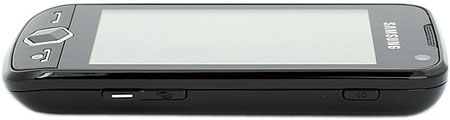 На левом боку Samsung S8000 Jet расположена качелька регулировки громкости. На правом ребре - кнопки спуска затвора камеры и блокировки экрана, а также клавиша запуска 3D-кубика меню. Кнопка камеры ощутимо выступает из корпуса - при нажатии наполовину происходит фокусировка, «дожав» получаем снимок. Все перечисленные элементы при использовании оказались удобными - управлять одной рукой очень комфортно.