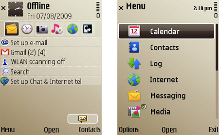 Меню Nokia E52 можно просматривать в двух режимах - как сетку три на четыре или списком. Анимированные иконки недоступны, но шрифт можно увеличивать. Как это типично для меню OS Symbian, возле запущенных в фоновом режиме приложений отображается небольшой кружочек, напоминающий, что надо их закрыть для того, чтобы система заработала быстрее. Хотя с таким мощным процессором вы можете запускать сколько угодно приложений, работа от этого не замедлится.