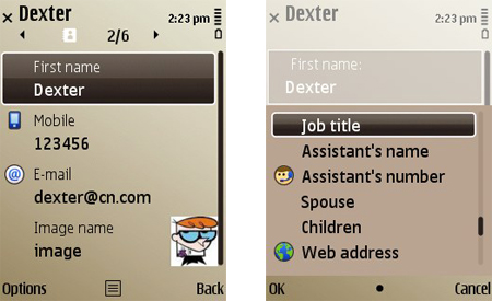 Телефонная книга устройства аналогична той, которую мы видели в Nokia E75 (читать обзор). Никаких замечаний к ней быть просто не может - количество записей не ограниченное, да и полей для записи информации можно создать столько, сколько нужно. Контакты объединяются в группы, для которых можно назначить мелодию вызова. Также можно индивидуализировать каждый контакт: назначить как мелодию вызова, так и картинку или даже видеоролик.