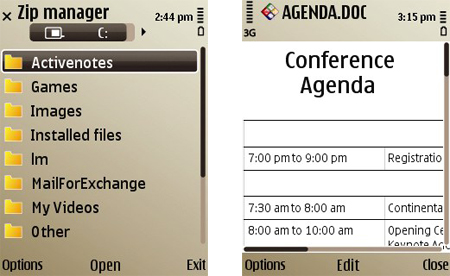 Мобильный офис нас очень приятно порадовал - поддерживается не только открытие файлов, но и редактирование их без установки дополнительного платного ПО. А самый главный сюрприз - это поддержка документов формата .docx, созданных в Microsoft Office 2007.
