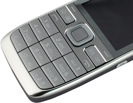 Если вы уже сталкивались с телефонами Е-серии, то вы явно оцените узнаваемый и строгий стиль новичка Nokia Е52. Размеры новинки - 116x49x9,9 миллиметров, благодаря чему телефон очень удобно держать в руках и носить в кармане. В общем, на данный момент это один из самых тонких бизнес-смартфонов, а металлические детали корпуса добавляют элегантности, а также делают корпус устройства долговечнее. Из металла выполнена и навигационная клавиша ниже дисплея. Полированный металл задней крышки покрыт небольшими точками, благодаря которым телефон не скользит в руке. Навигационный блок и алфавитно-цифровые кнопки цвета графита красиво оттенены серебристой полоской, окантовывающей переднюю панель.