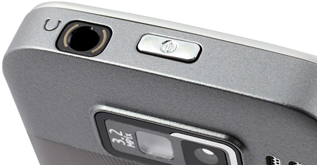 На торце Nokia E52 находятся 3,5-миллиметровый аудиоразъем и кнопка выключения. Компания Nokia иногда наделяет свои гаджеты крошечной кнопочкой Power, нажать которую непросто. Но на этот раз тенденция не подтвердилась - кнопка оптимальна по размеру и расположению на корпусе.