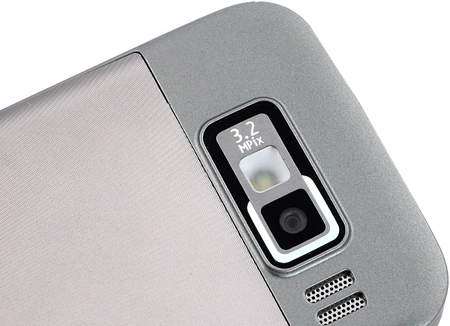 Задняя крышка Nokia E52 радует не только отблеском металла, но и тем, что практически не собирает отпечатков пальцев. На ней мы видим глазок 3-мегапиксельной камеры и LED-вспышку. Эти характеристики совершенно не впечатляют, но подробнее на камере мы остановимся позже.