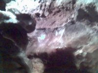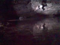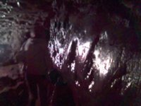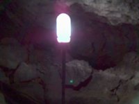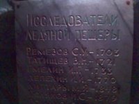 Внутри Кунгурской пещеры камера Е398 оказалась беспомощной: даже ночной режим не давал нужного эффекта: света было слишком мало для нормальной съемки. А встроенная подсветка помогает лишь на 10-20 см - ее можно можно использовать разве что для макросъемки (см. табличку с исследователями) или для крупного портрета. Для фотографирования в условиях пещеры нужна профессиональная камера с большой выдержкой и штативом. |