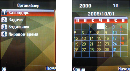 телефон оснащен очень даже неплохим органайзером. Он хорошо прорисован