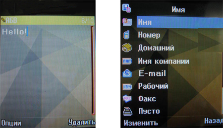 мобильный, домашний номера, имя компании, E-mail, рабочий, факс, день рождения, присвоить абоненту картинку или мелодию вызова, а также отнести его к одной из групп.