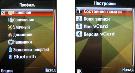 В меню содержится 12 пунктов, объединенных в стандартную сетку три на четыре. Это «Телефонная книга», «Сообщения», «Центр вызовов», «Профили», «Мультимедиа», «Bluetooth», «Настройки», «Развлечения», «Органайзер», «Приложения», «Мои файлы» и «Услуги».