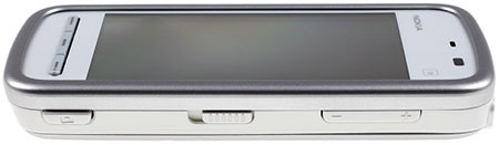 На правом боку разместились регулятор громкости, кнопка спуска затвора камеры и сдвижной рычажок блокировки экрана. Опять-таки все лучшее взято от Nokia 5800 XpressMusic. Правда, слово «лучшее» не относится к качельке громкости, которая так и осталась слишком тугой.