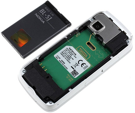 Теперь заглянем под капот. Снимаем крышку батарейного отсека и обнаруживаем под ней то, что и ожидали - литий-ионный аккумулятор Nokia BL-5J емкостью 1320 мАч.