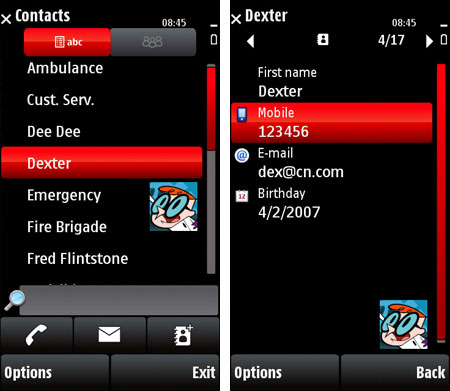 Nokia 5230 может похвастаться практически неограниченными возможностями телефонной книги. Контакты можно сортировать по имени или фамилии. Также искать нужного человека можно, постепенно набирая его имя - в конце концов, телефон выдаст разыскиваемый контакт (количество букв которые придется набрать напрямую зависит от объема вашей телефонной книги). К примеру, если у вас есть и Вася, и Василий, и Васелина, вам придется набрать четыре буквы имени, пока телефон поймет, что именно вы от него хотите. А если у вас имеется на букву «В» только Вася, то набрать придется только эту самую «В».