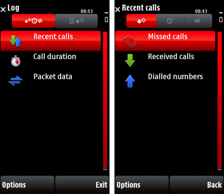 Попасть в журнал можно двумя способами: находясь на главном экране, нажать кнопку вызова на телефоне, или через главное меню. В первом случае будут отображены только вызовы за последние 30 дней. Во втором можно будет посмотреть в придачу и данные о последних сетевых соединениях.