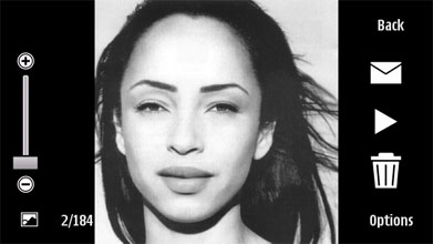 Фотогалерея в Nokia 5230 отлично оптимизирована под пальцевое управление, картинки разворачиваются на весь экран, а переходить от одной к другой можно простым листающим движением.