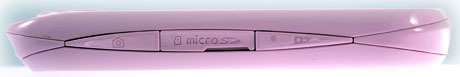 Размер телефона - 103.9х55.4х12.9 мм, вес - 92 грамма. На правой стороне корпуса находятся клавиши блокировки экрана и камеры, а также прикрытый слот для карты памяти. На левой - спаренная клавиша регулировки громкости и стандартный для Samsung интерфейс-разъём под заглушкой. Разъём для наушников находится на верхнем торце корпуса. Такое расположение понравится тем, кто, слушая музыку, носит телефон в кармане. К слову, комплектная гарнитура подключается к телефону через фирменный разъем Samsung, а не аудиоджек.