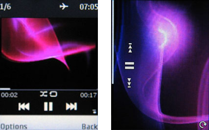 В Nokia 6303i Classic плеер воспроизводит как аудиофайлы, так и видеоролики. При проигрывании музыки на экране отображается из тега вся записанная информация. В фоновом режиме на экране остаются только обозначения управляющих элементов, само же управление производится навигационной клавишей. Интересно, что при воспроизведении видеоплеер также можно свернуть в фоновый режим.