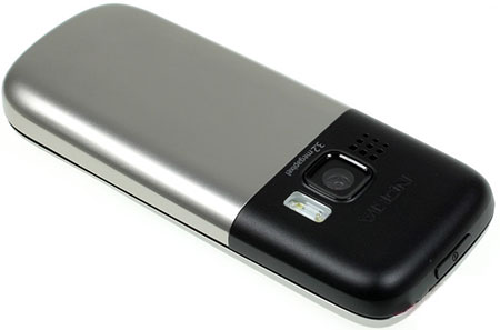 Верхняя часть задней панели Nokia 6303i Classic пластиковая. Под ней находится антенна, которую нельзя закрывать металлом. Тут же расположены окошко камеры, вспышка и динамик. Металлическая крышка аккумуляторного отсека хорошо пригнана и, как весь корпус в целом, вызывает ощущение, что люфт, даже самый маленький, даже со временем, невозможен.