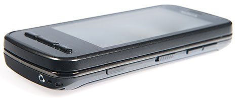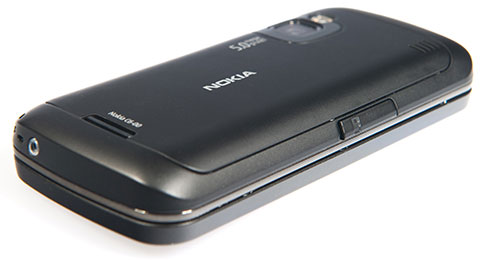 На правом торце Nokia С6-00 традиционно расположена спаренная клавиша регулировки громкости, кнопка камеры, ползунок блокировки аппарата.