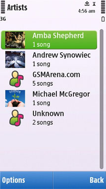 режиме воспроизведения на экране Nokia С6 отображается обложка альбома