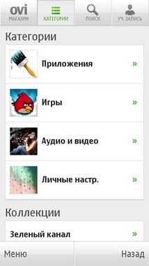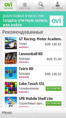 Вынесенная в главное меню иконка «Магазин OVI» перенаправляет вас в
