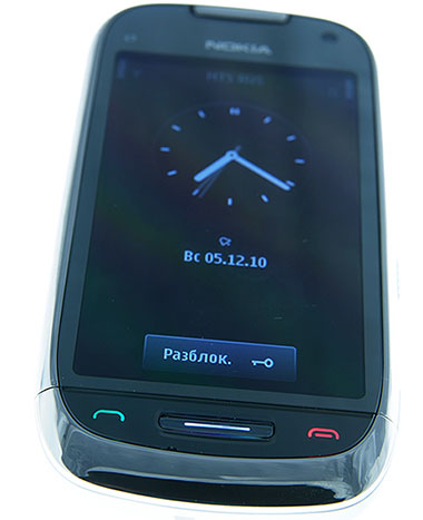 В нижней части лицевой панели Nokia C7 разместились три механические функциональные клавиши: вызова, меню и отбоя. Это, по моему мнению, является плюсом для эргономики смартфона, в сравнении, например, со старшей моделью Nokia N8. Преимущества этого решения я уже успел ощутить в условиях московских 20-градусных морозов – замерзшие пальцы не позволяют быстро использовать емкостный сенсорный экран для принятия вызова – и клавиши оказались очень полезными (по крайней мере, вам не придется снимать перчатки на холоде, чтобы осуществить простейшее управление).
