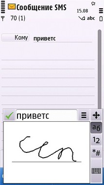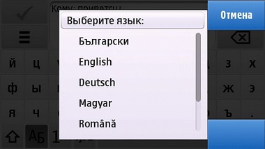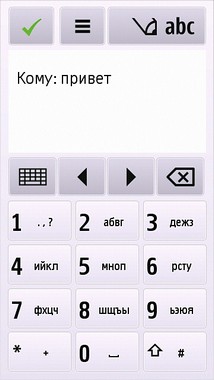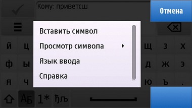 Набор сообщений в целом комфортен, за исключением не слишком удобного режима переключения между языками набора. Для смены языка нужно трижды нажать на появляющиеся подменю и лишь после этого произойдет переключение. Такая схема существенно замедляет процесс набора текста.
