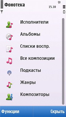Фонотека музыкального проигрывателя дает возможность выбора произведений по исполнителю, альбому, жанру и т.д.
