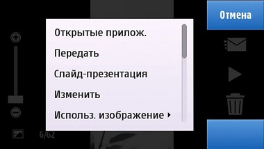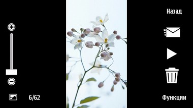Просматривать фотографии можно через галерею изображений, которая позволяет запустить слайд-презентацию, изменить изображение, а также отправить его на другое устройство выбранным способом.