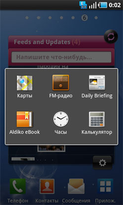 Как и в Wave, здесь есть целый набор предустановленных виджетов, начиная от мини-приложений, транслирующих на рабочий стол курсы валют и прогноз погоды, и заканчивая службой Social Hub c виджетом Feeds&Update. Напомним, что виджет выводит на рабочий стол ленту обновлений сразу трех социальных сервисов: Facebook, Twitter и MySpace.