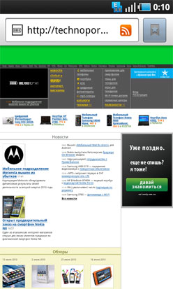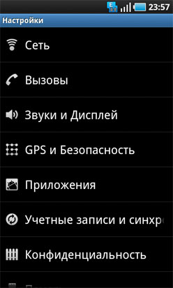 Сразу под дисплеем расположены сенсорные клавиши вызова меню и возврата в предыдущее меню. Прием и отклонение вызовов предлагается осуществлять при помощи виртуальных кнопок на основном экране. Мы всегда считали, что подобные действия удобнее осуществлять при помощи обычных аппаратных клавиш. Это понимаешь, когда нужно ответить на звонок зимой в перчатках. Но в случае с Galaxy S сенсор очень четко реагирует на нажатия, и в процессе тестирования ни разу не пришлось пожалеть об отсутствии аппаратных клавиш.
