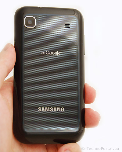 Вся задняя панель пластиковая. По структуре она напоминает материал, использовавшийся в Samsung S5230 Star, и во множестве других решений. Материал достаточно практичный. Хотя царапается он легко, мелкие дефекты практически не видны за счет рельефной поверхности. Для слота MicroSD на боковых гранях телефона места не нашлось, его расположили под задней крышкой. Для замены карточек снимать аккумулятор не нужно, достаточно снять крышку.