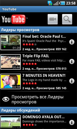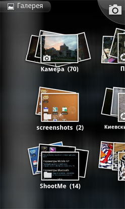 Очень эффектно реализован просмотр картинок и видео в галерее. Производитель полностью переработал стандартную галерею Android 2.1. Ее визуальные преимущества можно оценить на скриншотах. В галерее традиционно задействован датчик движения — все картинки и папки можно пролистывать, наклоняя телефон в ту или иную сторону. Изображения открываются в полноэкранном режиме, в соответствии с размещением большей стороны. Разумеется, есть поддержка мульти-тач, которая позволяет легко масштабировать изображения. Нельзя не отметить высокую скорость открытия фотографий и видео в галерее. Никаких задержек даже при запуске довольно больших видеофайлов. Очень удобно, что проигрыватель умеет автоматически растягивать видео по всей ширине экрана и запоминает место паузы последнего открытого видеоролика. Ну а качество видео (особенно в HD-качестве) на SuperAMOLED-экране выше всяких похвал.