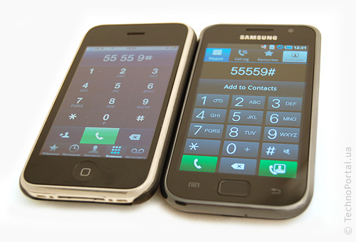 Galaxy S довольно крупный и широкий. Никакого намека на гламур, никаких металлических вставок и зеркальных поверхностей. Видно, что производитель делает ставку не на дизайн, а на технические возможности. Судя по ажиотажному спросу на новинку, телефону это нисколько не повредило. С другой стороны, soft touch покрытие HTC Desire явно в выигрыше по сравнению с обычным глянцевым пластиком Galaxy S. Но в целом нам понравилась лаконичность и внешняя простота аппарата. Ничто не отвлекает внимания от роскошного дисплея. Легкий и тонкий телефон, не обремененный металлическими вставками можно свободно носить в кармане, а поверхность не нужно постоянно протирать от отпечатков пальцев. Исключение лишь дисплей, но и здесь ситуация на порядок лучше, чем, скажем в iPhone 3G.