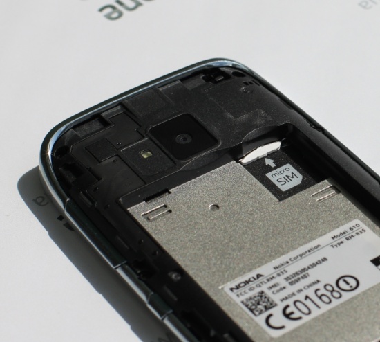 В руке Nokia Lumia 610 ощущается увесисто, а потому первым вопросом, который я задал, начав осмотр устройства, был закономерен: «С каких же элементов изготовлен корпус, что трубка»?