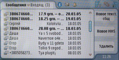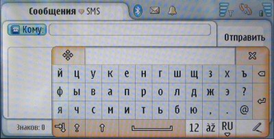 Сообщения. Коммуникатор поддерживает SMS, MMS и e-mail, все виды сообщений сводятся в единую папку Входящие, работа при создании нового сообщения также происходит в едином окне.