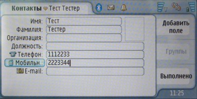 Адресная книга в Nokia 7710 по возможностям примерно соответствует таковой в коммуникаторах на Nokia Series 80 и позволяет хранить до 31 информационного поля на абонента (имя, фамилия, отчество, звание, обращение, организация, должность, 3 номера стационарных телефонов, 3 номера мобильных телефонов, 3 пейджинговых номера, 3 номера факса, 3 адреса E-mail, 3 Web-адреса, DTMF, текстовая заметка, день рождения, 3 почтовых адреса). Дополнительно для каждого абонента можно назначить фотографию и индивидуальную мелодию звонка. Конечно, в этом списке можно заметить весьма большую избыточность, однако основной набор полей лаконичен, к нему можно добавлять другие по мере необходимости. Объем адресной книги ограничивается количеством свободной памяти.