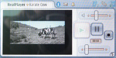 Медиапроигрывателей в телефоне два. RealPlayer предназначен для проигрывания видео, а Аудиоплеер — для воспроизведения звуковых файлов. Оба плеера имеют схожие пользовательские интерфейсы, позволяют сохранять и загружать списки воспроизведения. К аудиоплееру никаких претензий у нас нет, он вполне удобен. А вот Real Player не совсем эффективно использует экранную площадь, изображение у него слишком мелкое, растягивать его на весь экран плеер не умеет.