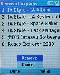 В нашем образце был предустановлен калькулятор, апплеты для управления встроенным модемом и инфракрасным портом, утилиты для очистки памяти и остановки работы ненужных приложений. Последняя необходима, так как в Smartophone 2002, как и в Pocket PC, программы не выгружаются из памяти при закрытии их окна, а продолжают работать, занимая некоторый объем в ОЗУ.