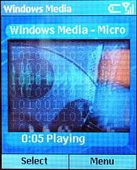 Windows Media Player — универсальный аудиовидеоплеер. Он поддерживает аудиоформаты WMA и MP3 и видео — WMV. Встроенная память телефона и карта памяти SD/MMC (если таковая установлена) автоматически сканируются на наличие медиа-файлов, из которых составляется плейлист. Возможности и особенности проигрывателя практически такие же, как в Pocket PC. Заметим, что для Smartphone 2002 есть и альтернативные проигрыватели указанных форматов, а также видеоплееры, воспроизводящие видео в форматах MPEG-1 и MPEG-4.